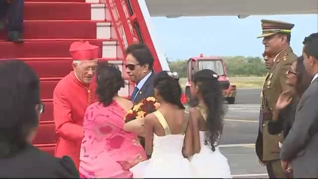 Le Cardinal qui a foulé le sol a 14 heures 15, accueilli chaleureusement par le Premier ministre Sir Anerood Jugnauth et Lady Sarojini Jugnauth.